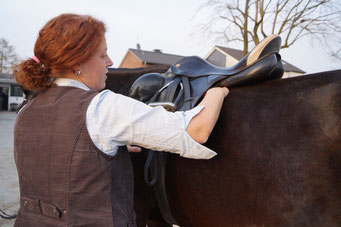 Wir kommen zu Ihnen und beurteilen Ihren Sattel auf dem Pferd, in Bewegung und mit Reiter. Um in Ruhe alles prüfen zu können bitten wir Sie ihr Pferd und ihren Sattel zum verabredeten Termin am Stall bereit zu halten. Wir erledigen dann die notwendigen Änderungen in unserer Werkstatt und Sie können Ihren Sattel in der Regel nach 1 - 3 Werktagen bei uns abholen. Auf Wunsch liefern wir Ihnen den Sattel wieder mit erneuter Anprobe aus . Alternativ können Sie mit Ihrem Pferd und Sattel zu uns auf den Hof kommen - wir haben auch hier die Möglichkeit auf unserem Reitplatz den Sattel unter dem Reiter zu begutachten - und wir passen vor Ort an, ändern, kontrollieren und Sie können den Sattel sofort wieder mitnehmen. Somit brauchen Sie auf Ihren Sattel nicht zu verzichten und er ist sofort wieder einsatzbereit.